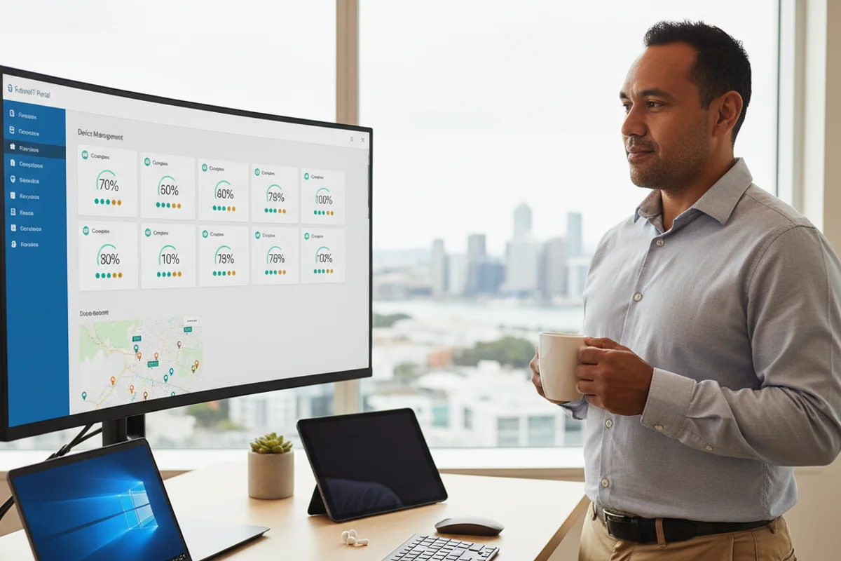 Your team's devices shouldn't need a two-hour IT setup session. Our MDM platform means laptops, phones, and tablets configure themselves — security policies applied, apps installed, and compliance enforced before anyone opens their first email.